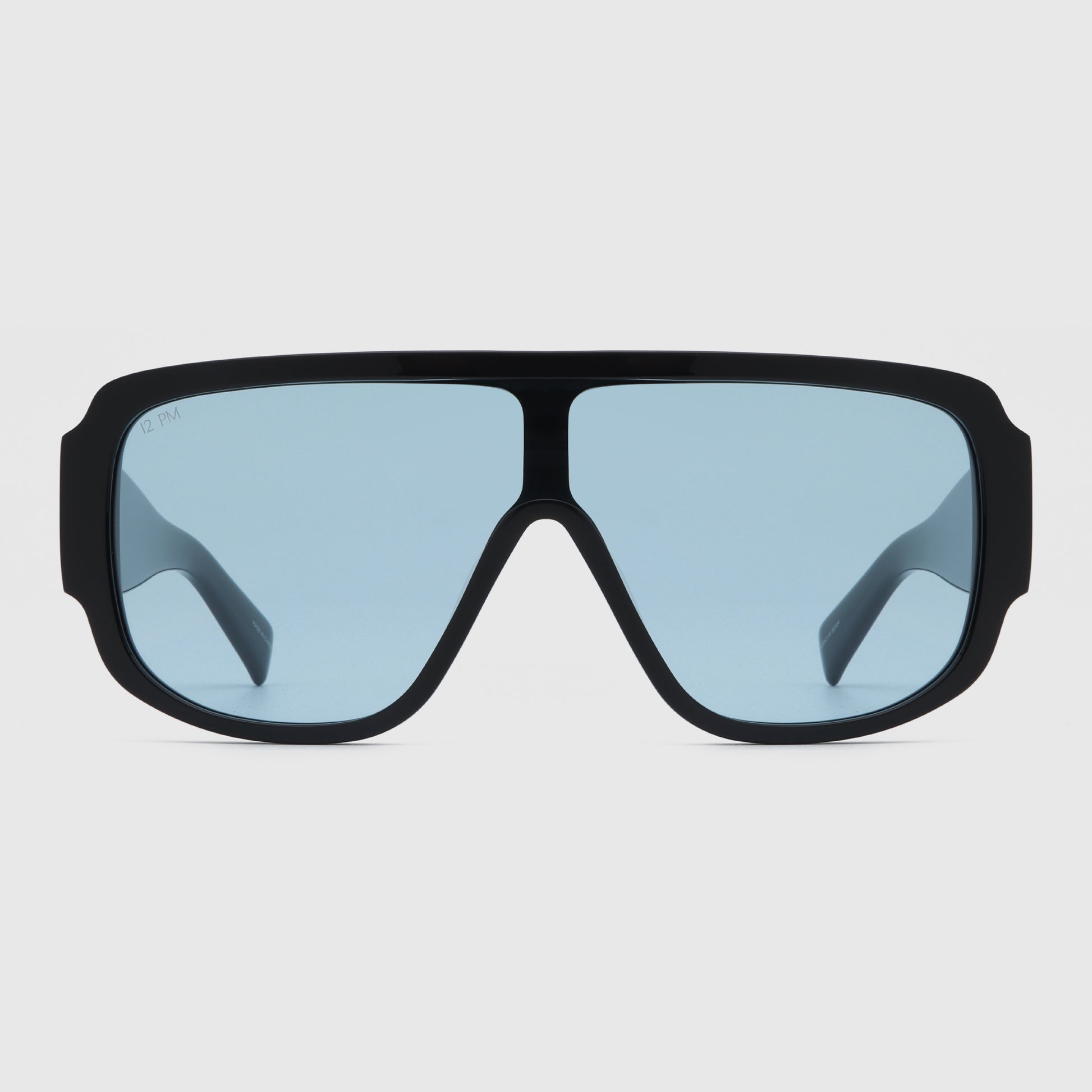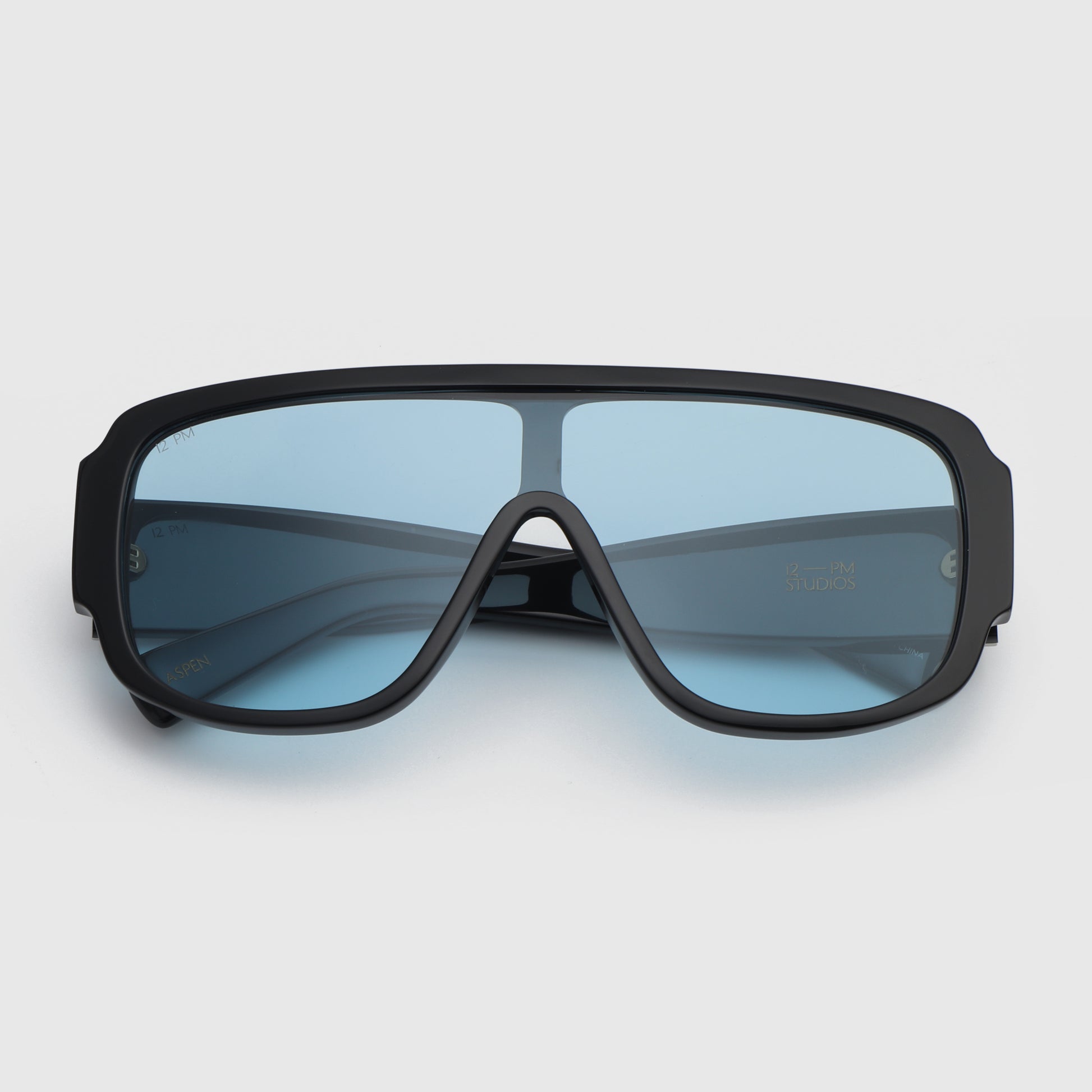Aspen Denim — Deep black frame paired with crisp blue lenses and silver hardware for a cool, refined finish.
