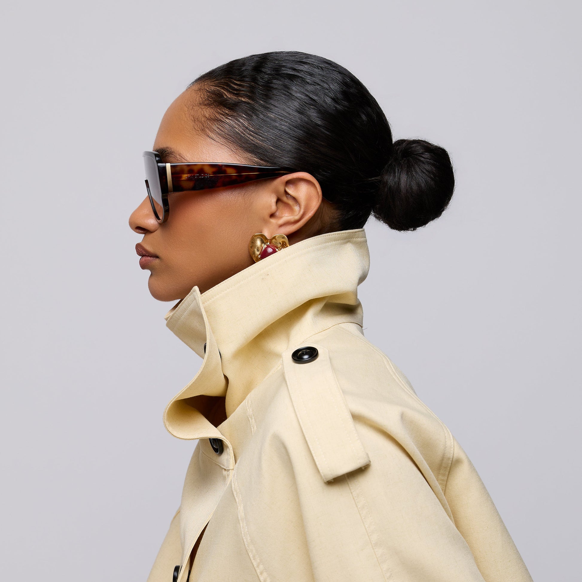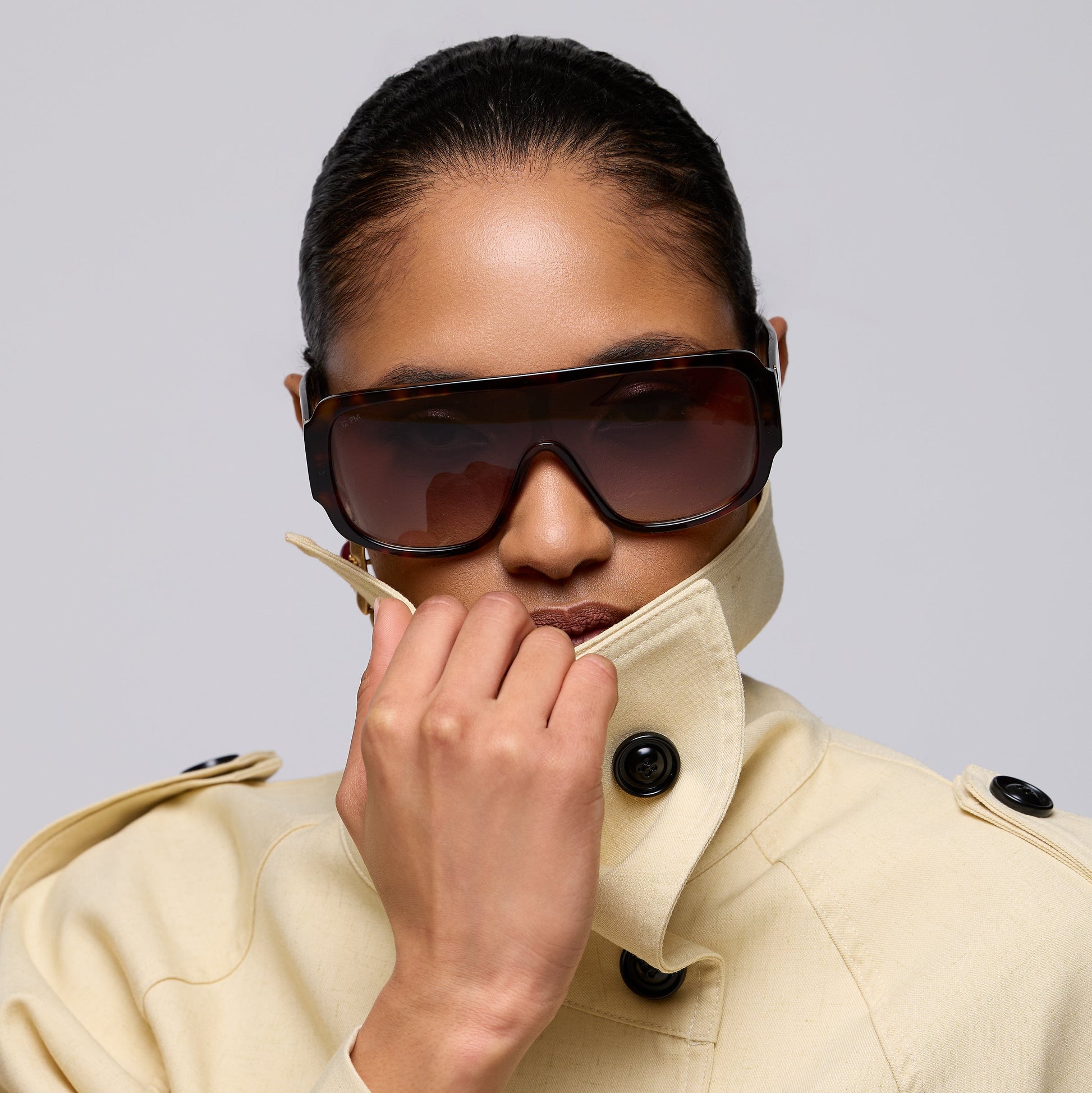 A bold, modern shield designed with a sculpted oversized silhouette and clean, architectural lines. ASPEN delivers effortless edge with its wraparound profile, handcrafted acetate, and signature metal temple detailing—built to stand out in any setting.