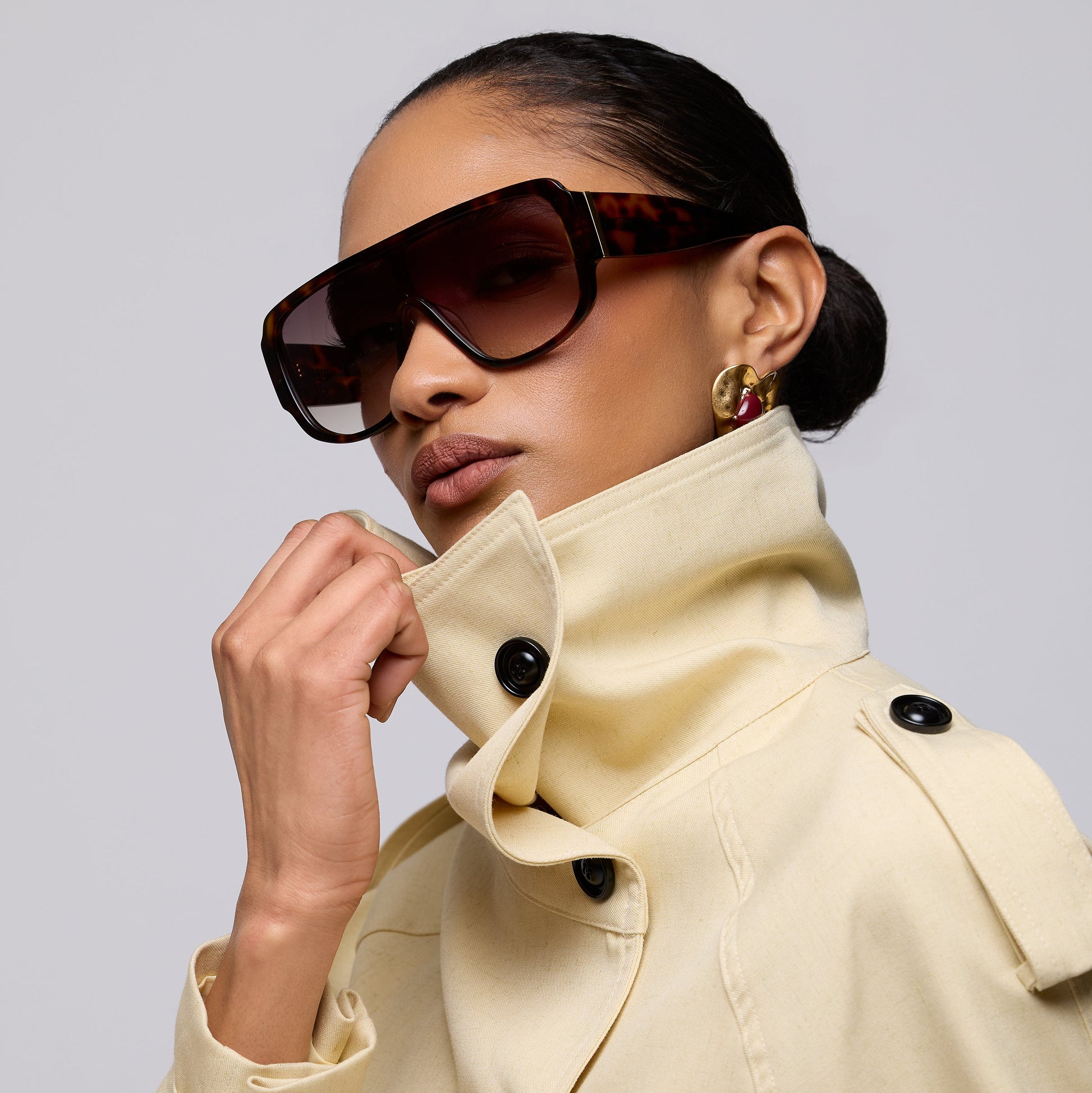 Aspen Mocha — Rich tortoise with a smooth gradient lens and gold hardware for a warm, timeless look.