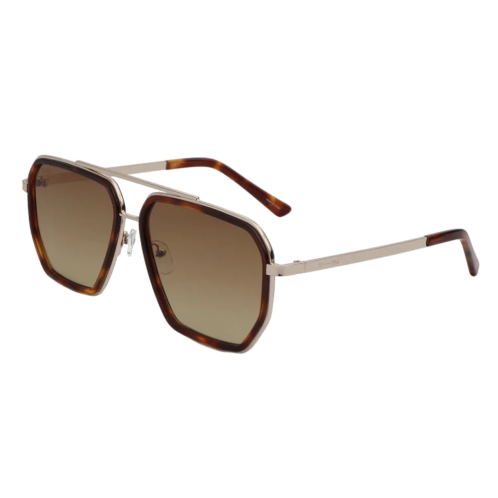 Meet LAGOS: A masterclass in quiet confidence. This geometric frame blends polished gold-tone metal with rich tortoise inlay accents, offering a timeless silhouette that feels both architectural and elevated. The warm gradient lenses evoke ease and sophistication with every wear.
