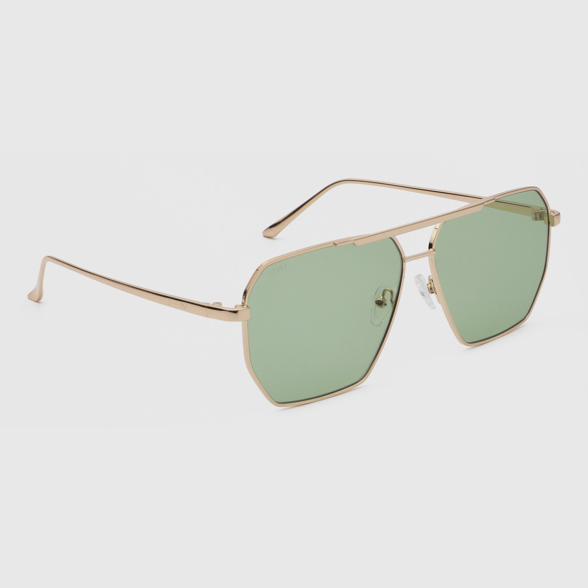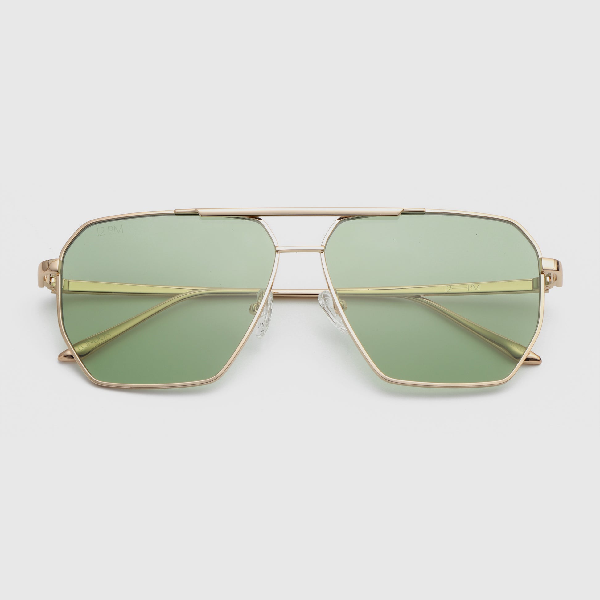 London Evergreen — Polished gold matched with a rich green lens for a cool, refined finish.