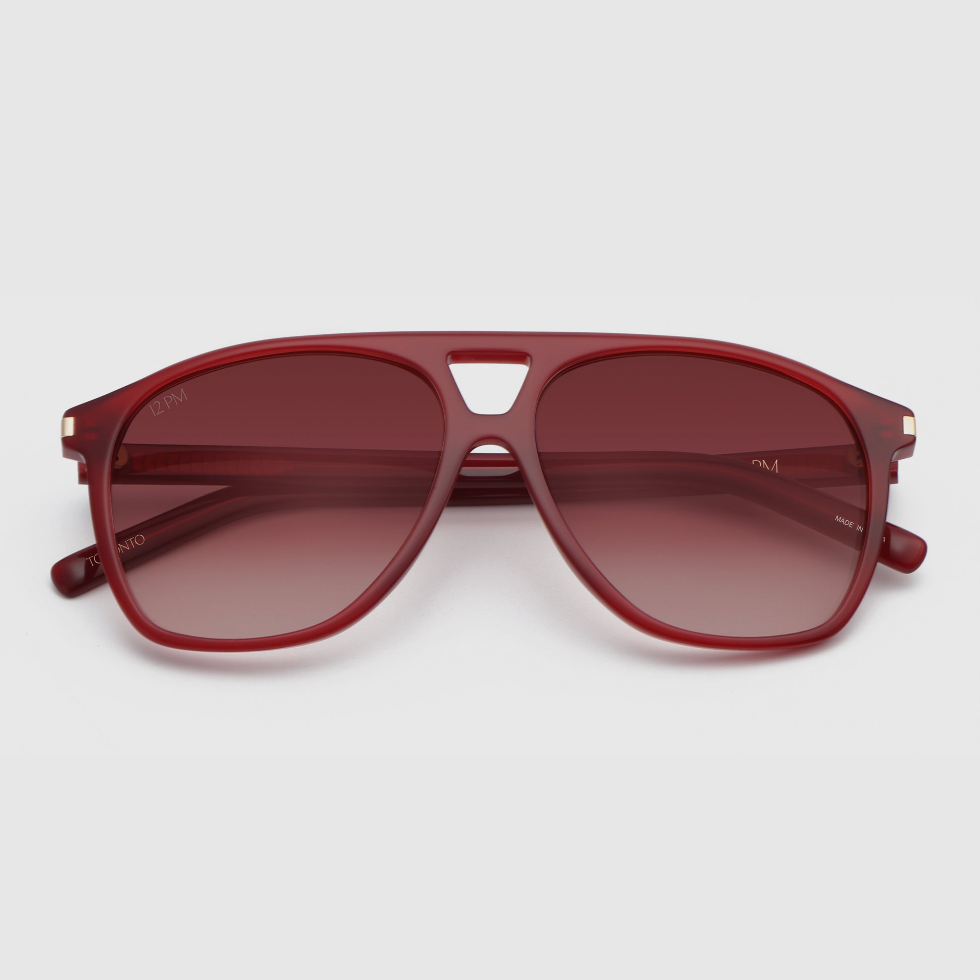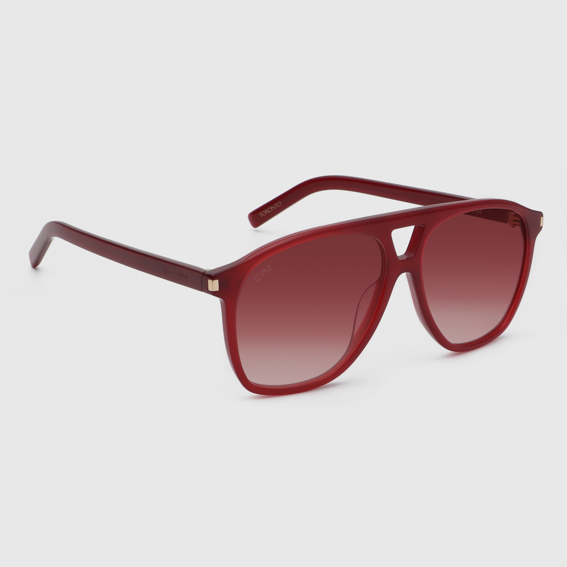 Meet TORONTO Cherry, the standout aviator designed to turn heads with its clean silhouette and rich red finish. The rounded lens shape and signature cutout bridge give it a modern, streamlined feel, while rose-hued lenses add a smooth tonal look.